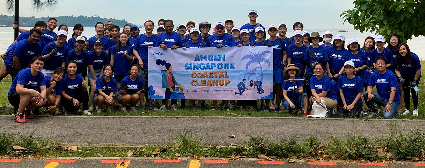 At another Amgen manufacturing site on the other side of the world, volunteers from Amgen Singapore came together to help pick up trash from a local waterway, “I’m delighted to see the enthusiastic support represented by our diverse functions—we are all coming together as One Amgen in committing to environmental activism,” said Wallace Torres, vice president of Site Operations at Amgen Singapore. “Studies have shown that by 2050, there will be more plastic than fish in the world’s ocean. We hope that we can play our part in protecting our planet to create a safer and cleaner environment for all. Together, we can turn the drop into a blue wave of change.”