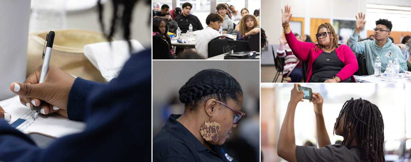 Taking notes at the orientation for future college students in Culver City, California by the nonprofit Educating Students Together. Mark Von Holden/Getty Images for Amgen