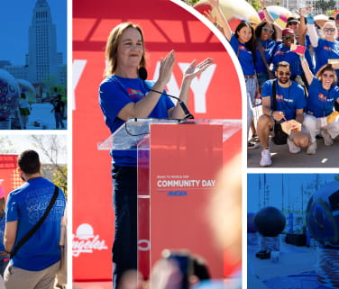 Volunteers and the public came to downtown Los Angeles to participate in the first Community Day presented by Amgen in the lead-up to the 2026 FIFA World Cup™. Photo by Katie Moos for Amgen